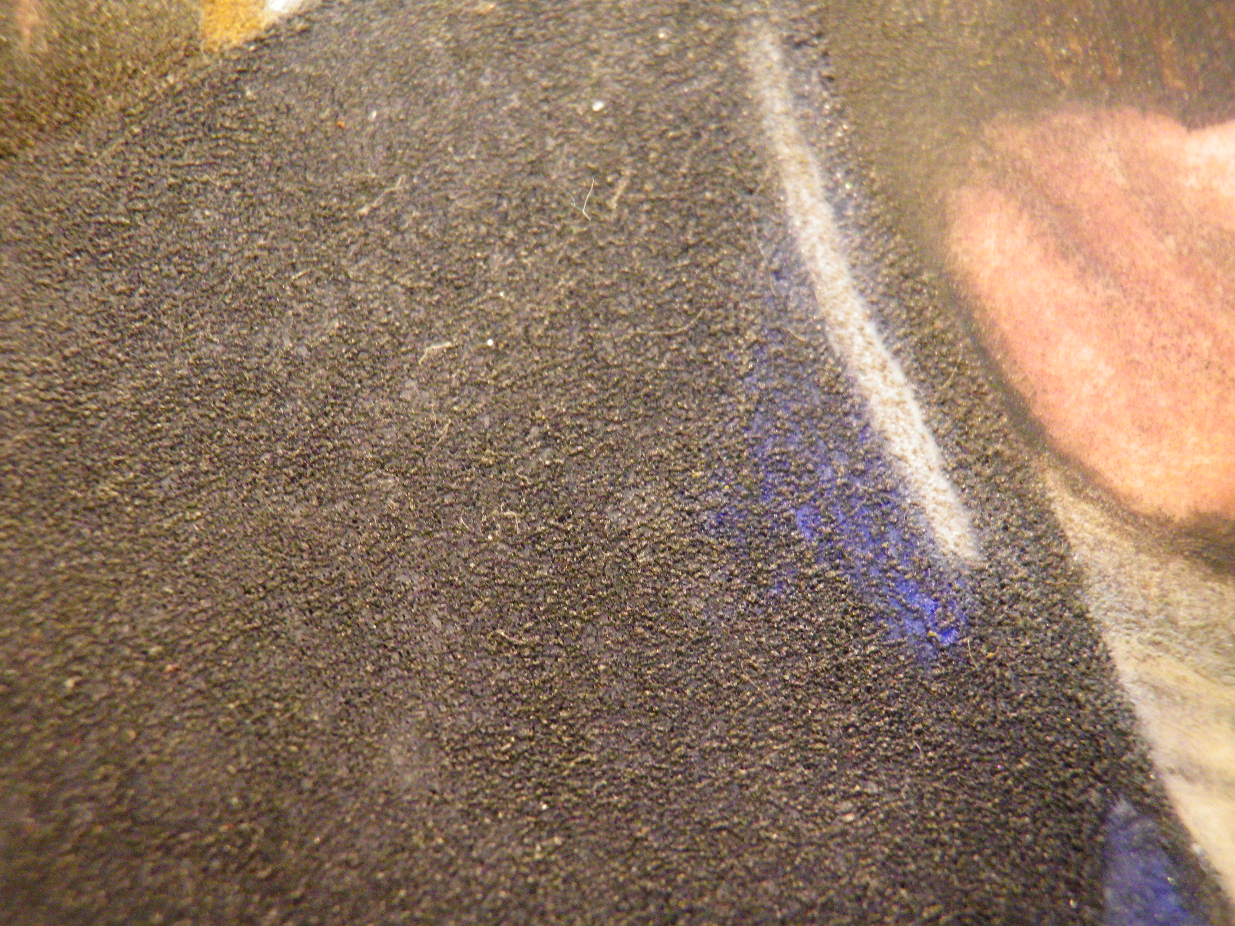 This is a close up picture of the heavily stippled surface where you can see the lint and fibres sticking.