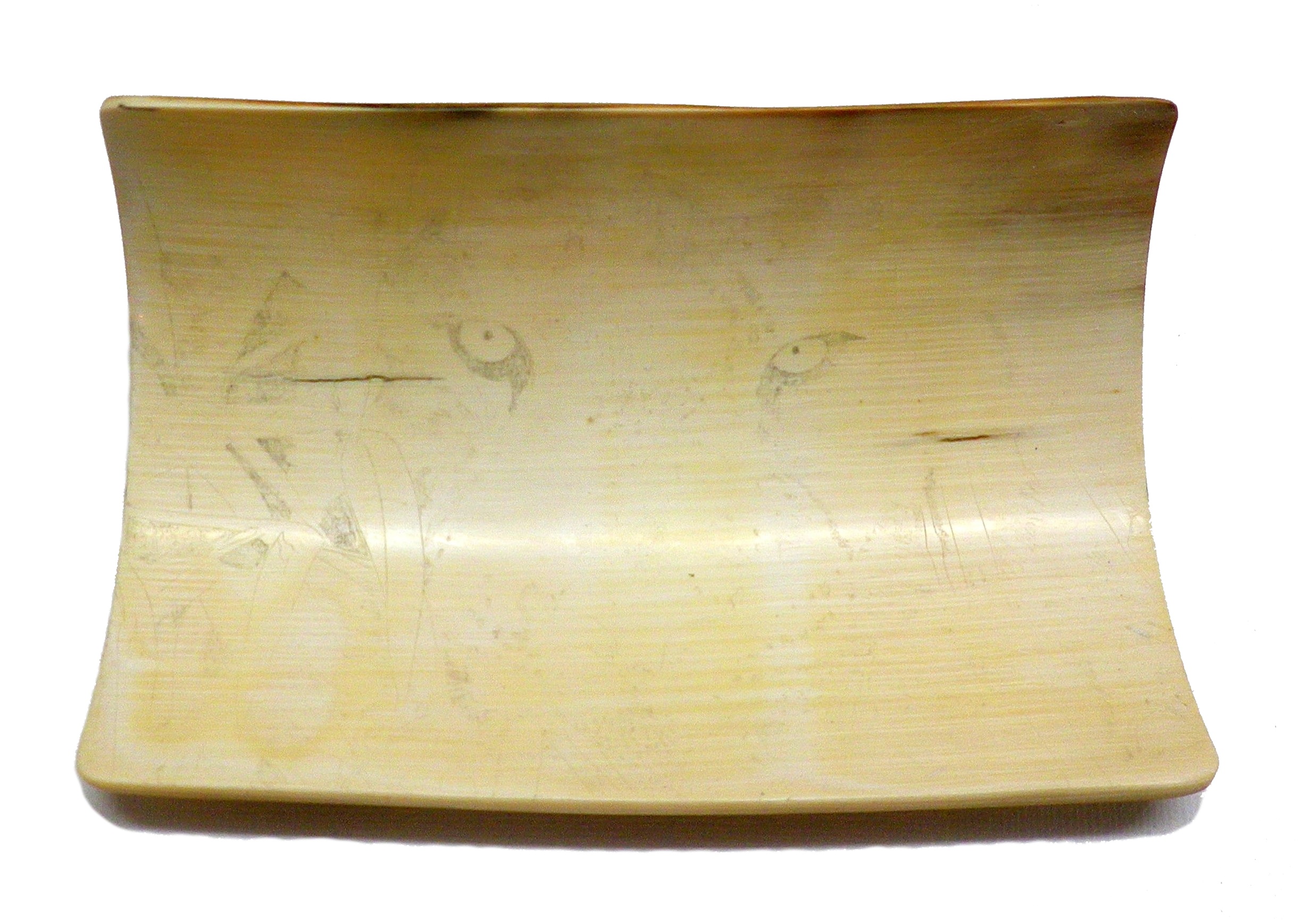 When I polished the ivory, the outside was brown and discoloured from the fossilisation process. When I sanded the inside curve however, it came back to a creamy white colour. Because of this, I decided to scrimshaw the inside curve like I did for the frog scrimshaw on the home page. It’s a little harder to work but it is a beautiful piece of mammoth ivory.