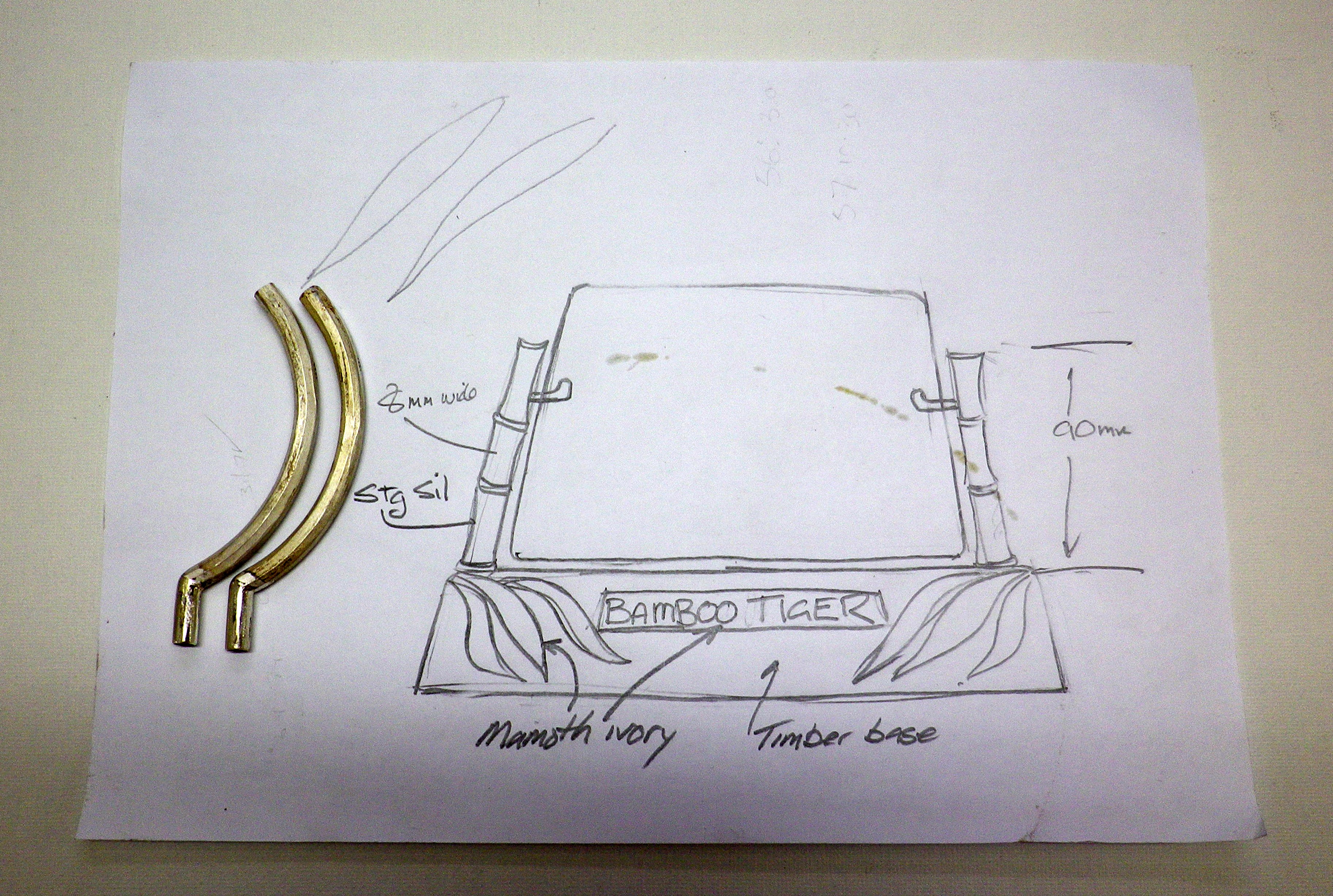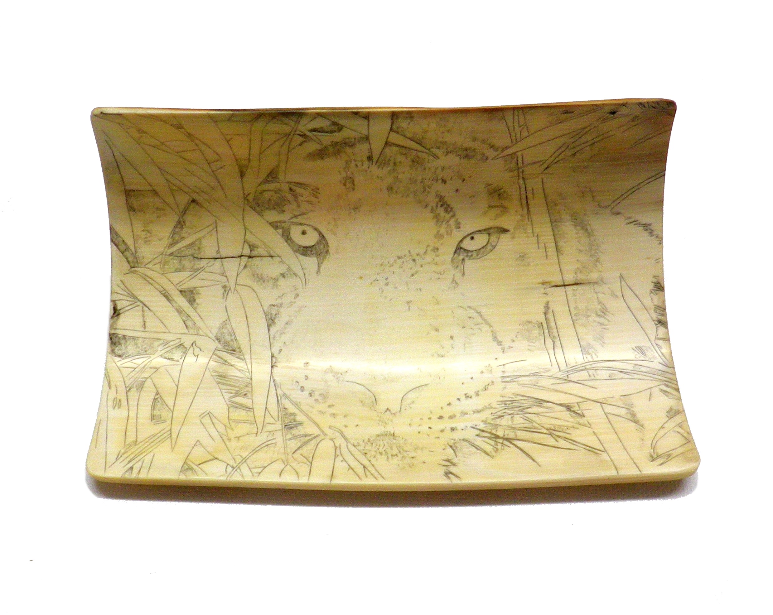 This is the fully assembled stand. I’ve named the scrimshaw “Bamboo Tiger”.