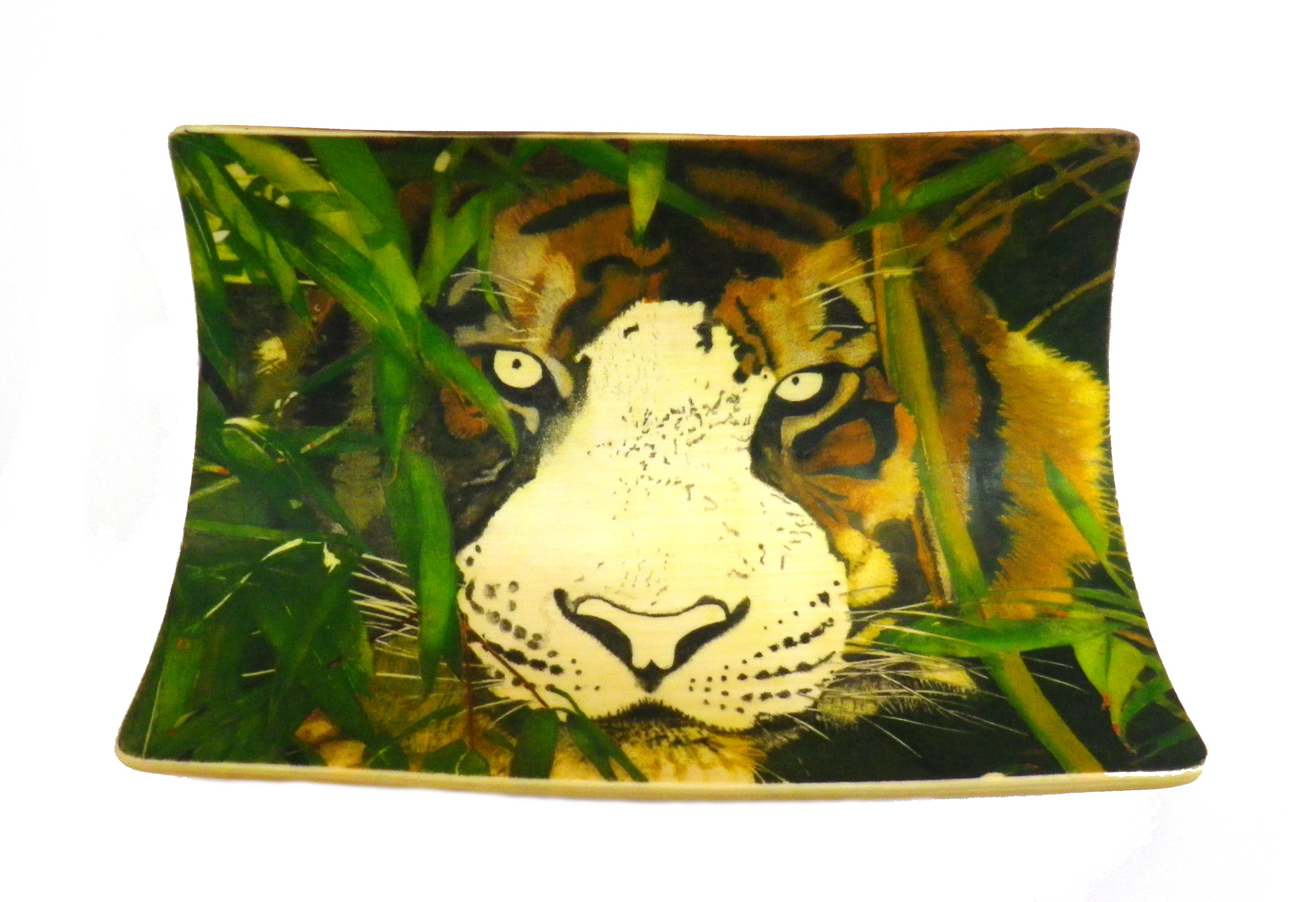 This is the ivory with the tiger picture attached ready to cut out the outline and some detail.