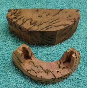 If you make pieces intended for display, you’ll need good stands to showcase them. My first bases were made of sterling silver but now that the pieces are getting bigger I use exotic woods. I find the burls of a tree have the most interesting patterns and colours and help to make your scrimshaw look professional. Many pieces of ivory won’t stand up without support so they need something to hold them in place and you may as well make the stand look as nice as possible. You’ll need to contact a specialist timber yard that sells to cabinet makers or luthiers. I buy my wood from Neale and his wife Carla at www.djarilmari.com where they sell some very nice pieces of top quality wood. I also get offcuts from the local timber yard or cabinet makers workshops, you only need small offcuts, 20cm x 10cm by 5cm thick.