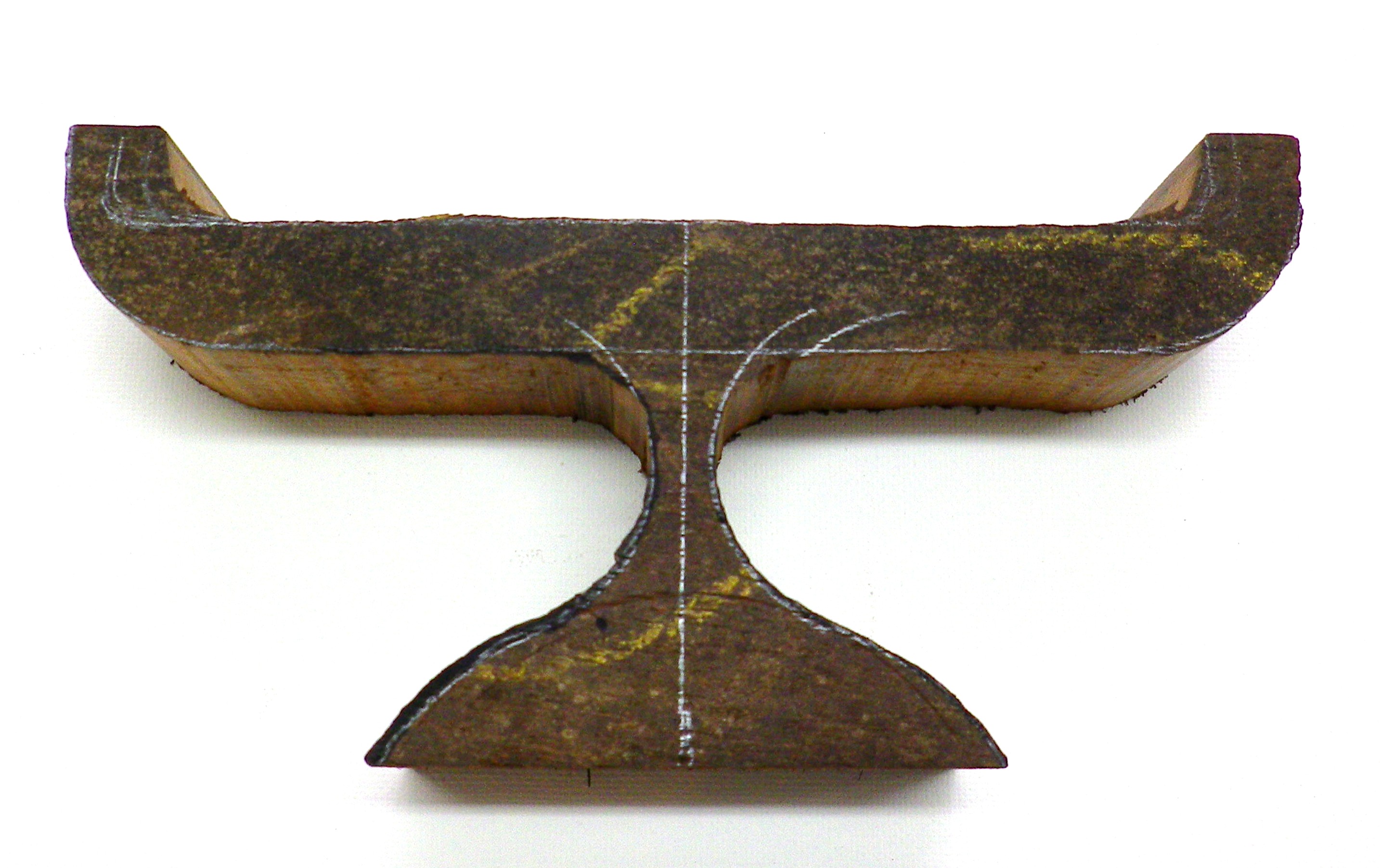 Next the stand was sanded down to the finished shape. Then I made a name plate from mammoth ivory and stippled it.