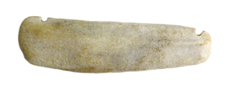 This picture will be a nice easy one, (so I think). The Ivory is a nice piece of Fossil Walrus artifact; it weighs 314 grams and measures 195mm x 55mm. It is an artifact of fossil Walrus ivory that was fashioned by the Inuit into a useful tool, a net fishing weight.