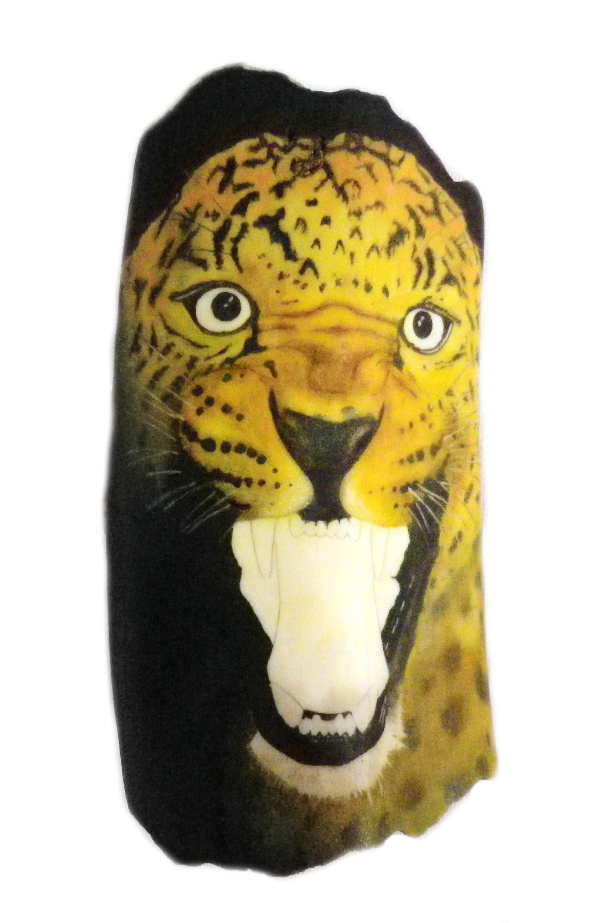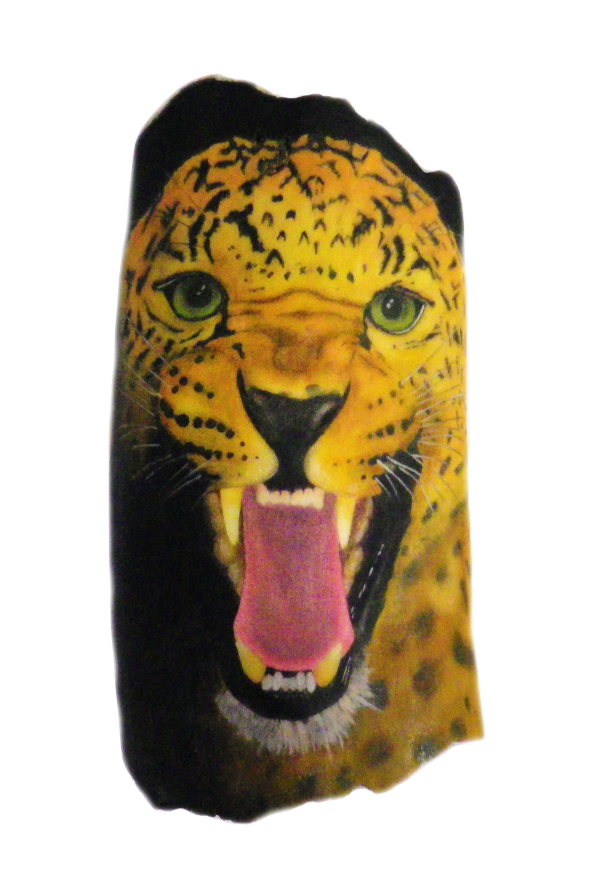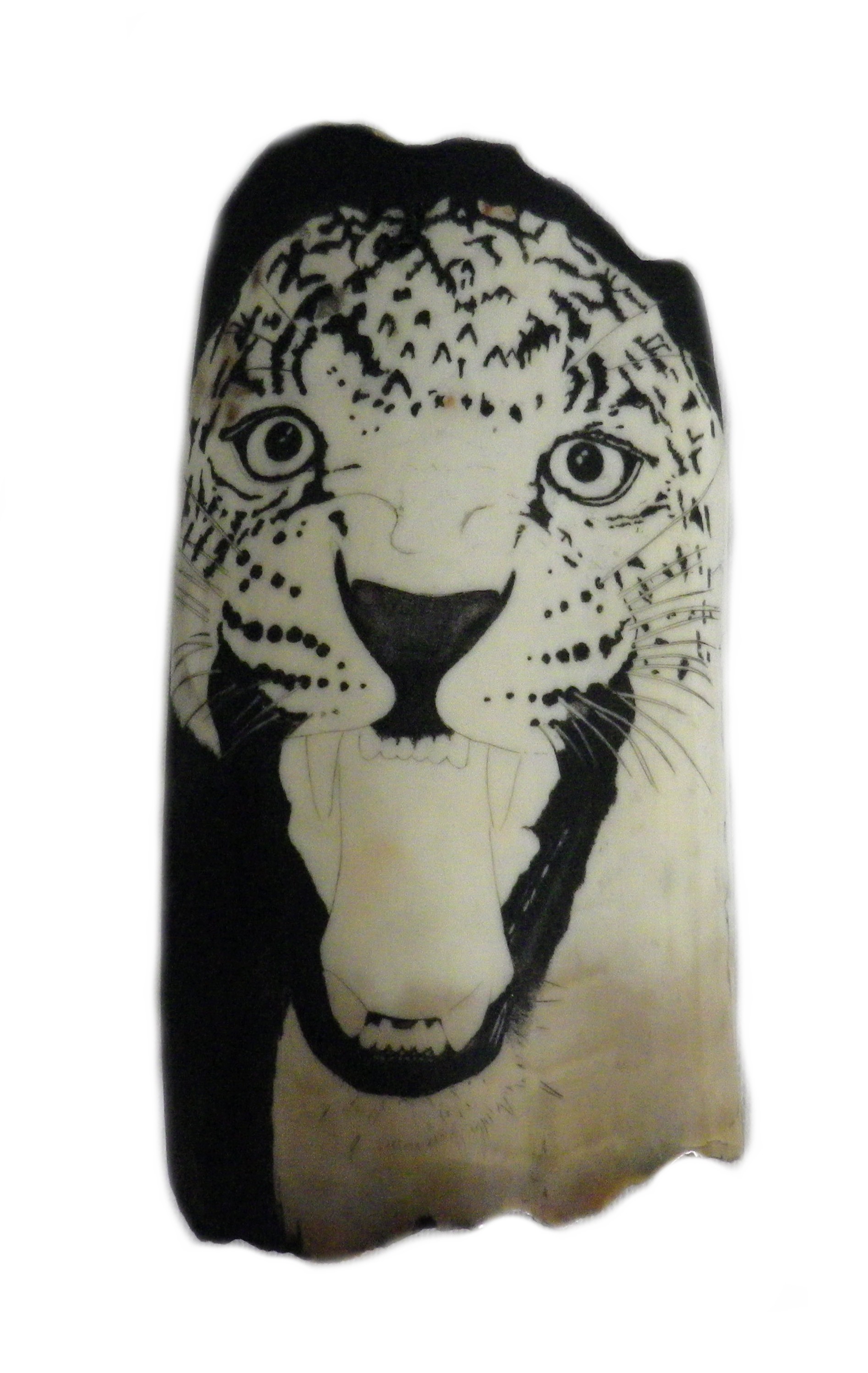 This is the fossil Walrus polished and ready to have the Leopard picture attached. It has a rough spot in the center top, plus strong discoloration at the bottom and top left, I’m sure they will cover up OK.