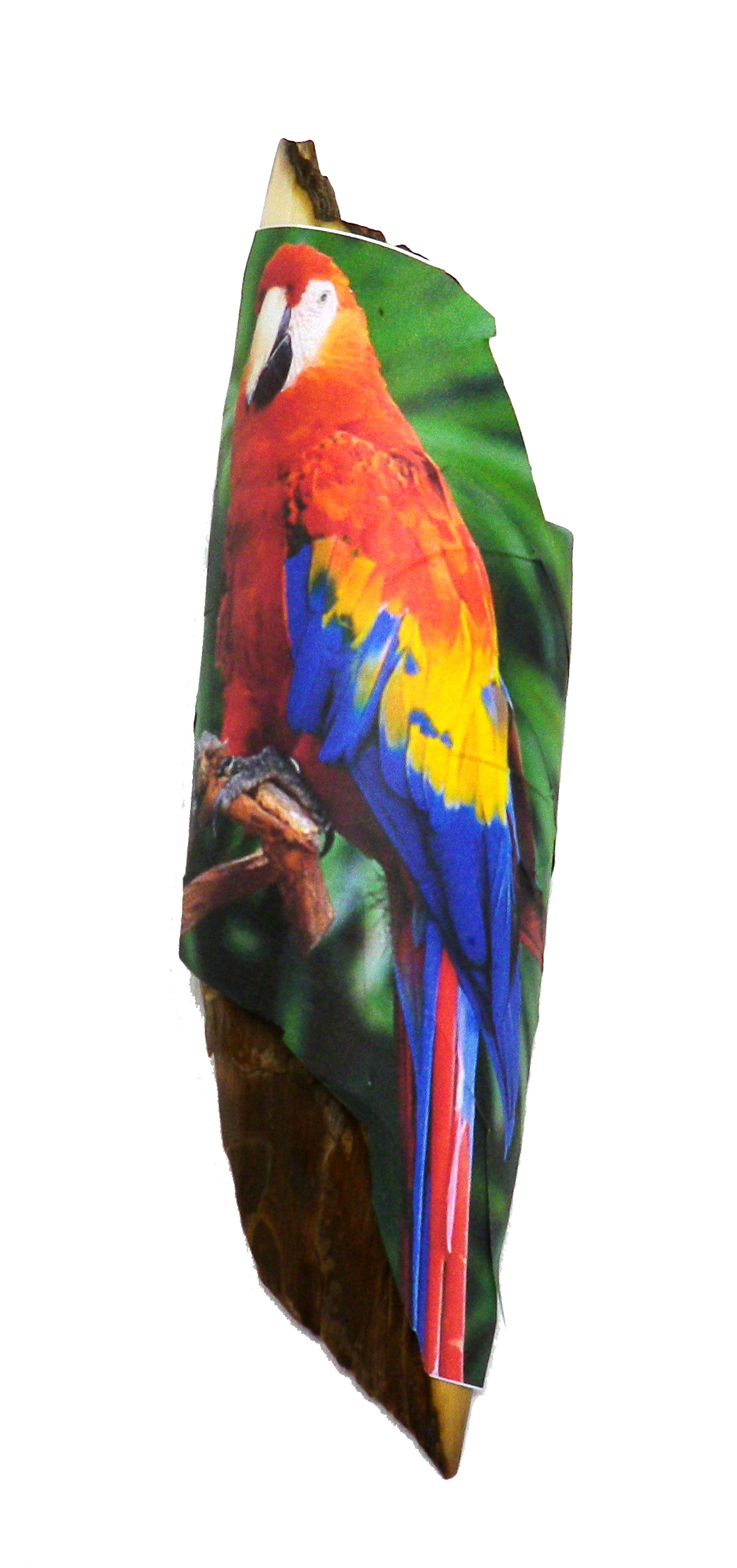 This is the mammoth ivory with the picture stuck to the surface ready to be cut out. The parrot fits the ivory perfectly.