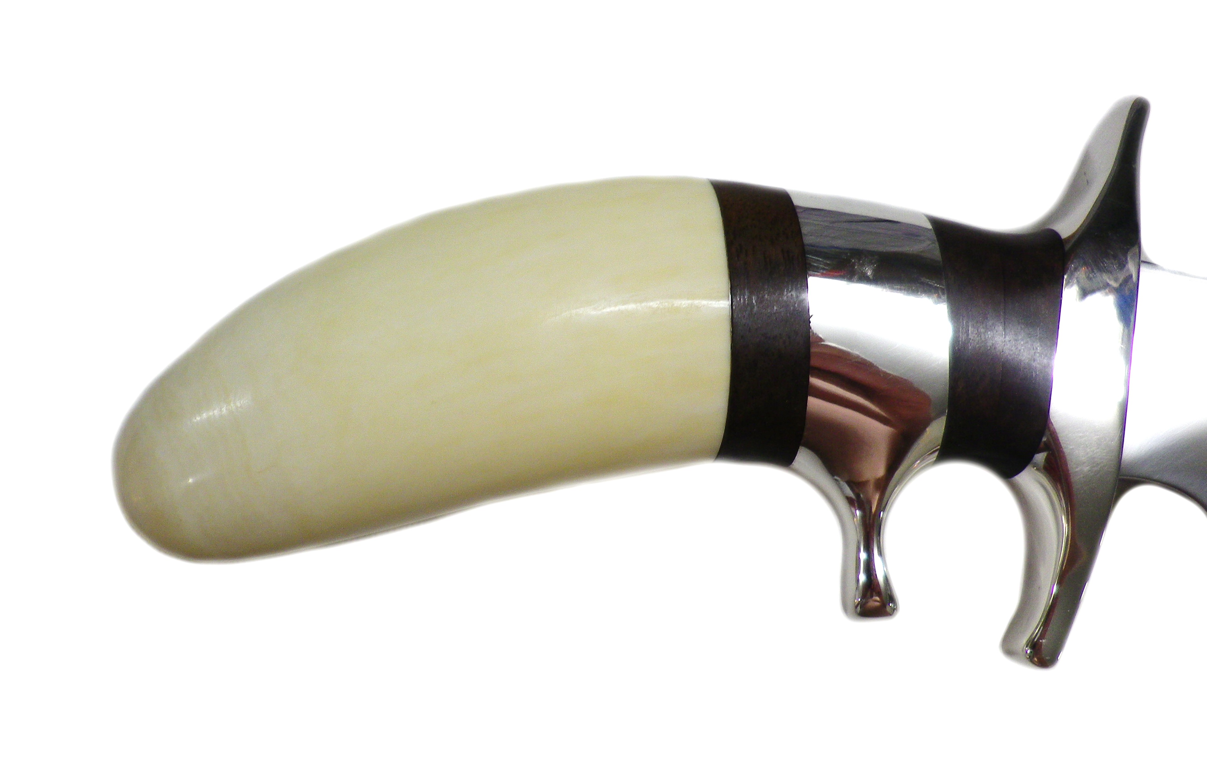 The next scrimshaw will be on a “Fighter Knife” that I made years ago. The knife blade is 440c stainless steel with Snake Wood, Sterling Silver spacers, and a Whale tooth handle.