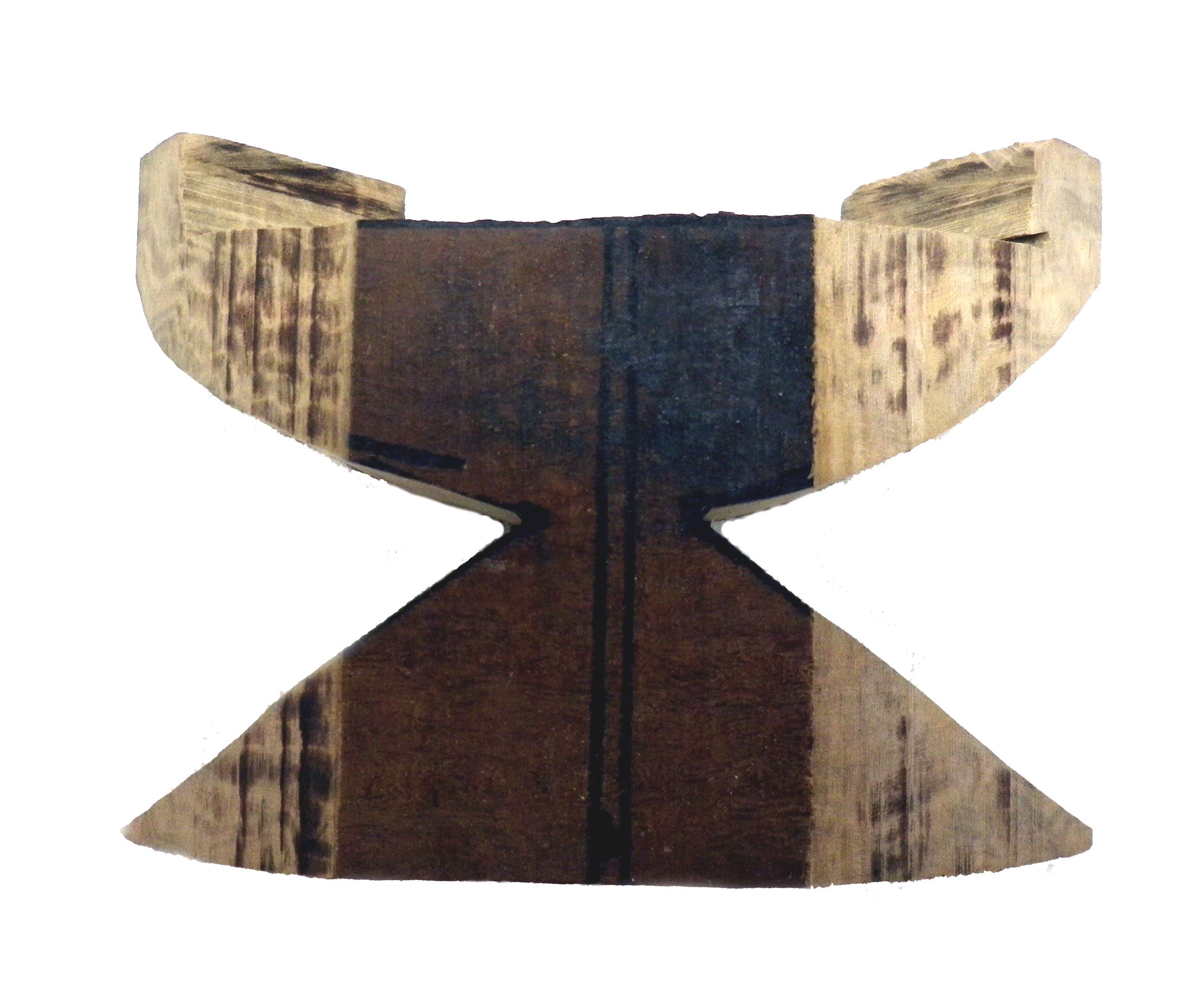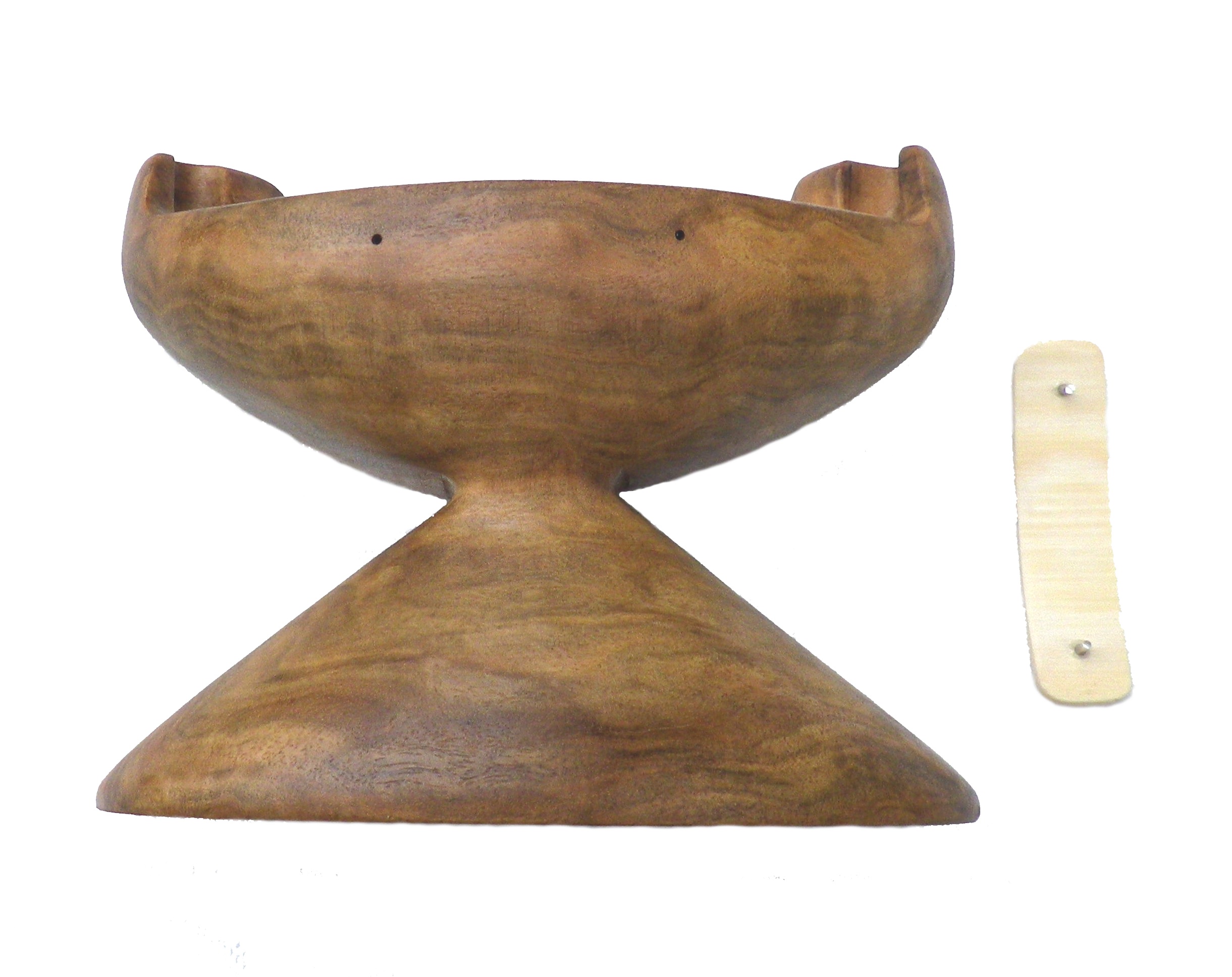 This is the finished base with holes pre-drilled to attach the name plate. Once I finished this base and had a good look at it I realized it was unbalanced so I altered the shape a few times until I was satisfied. The two pins set in the back of the name plate fit into the holes in the base with a little wood glue.