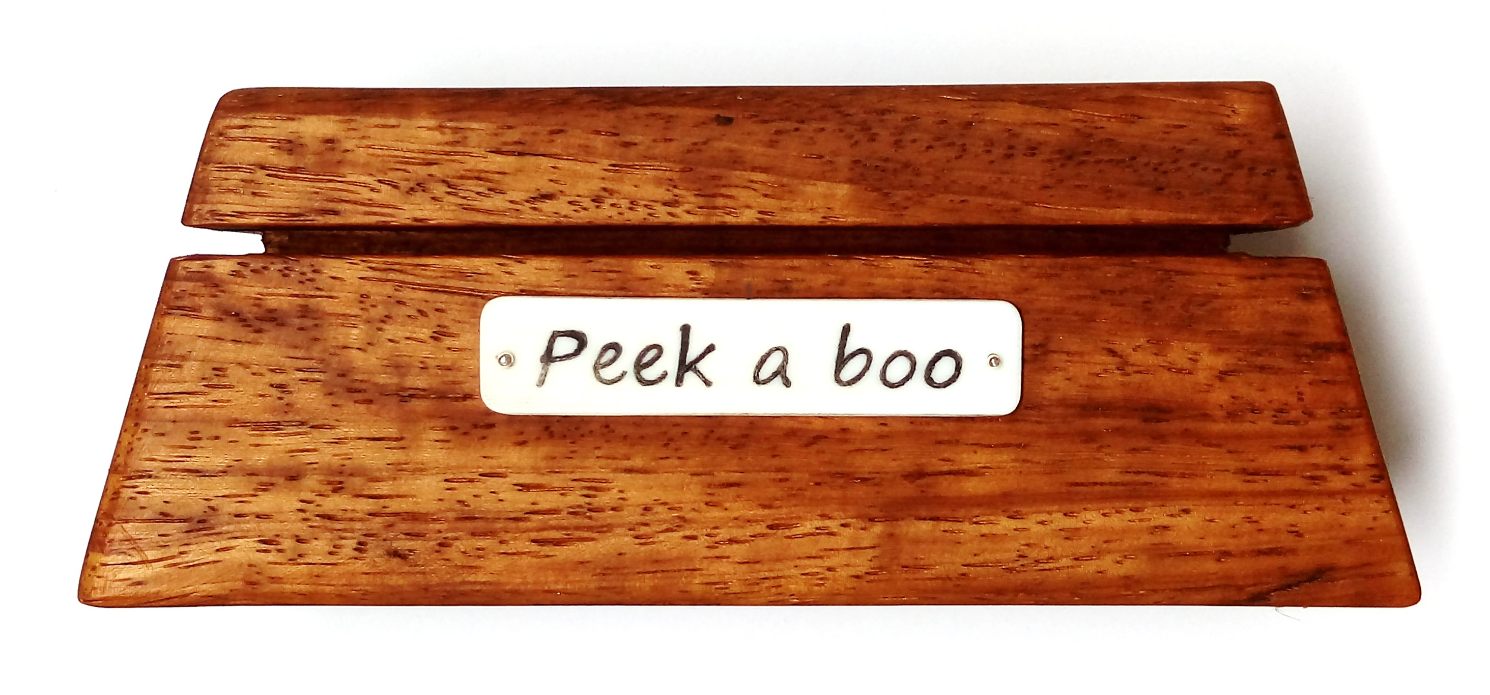 The base is made from Rosewood with an Ivory name plate attached using Sterling Silver pins.