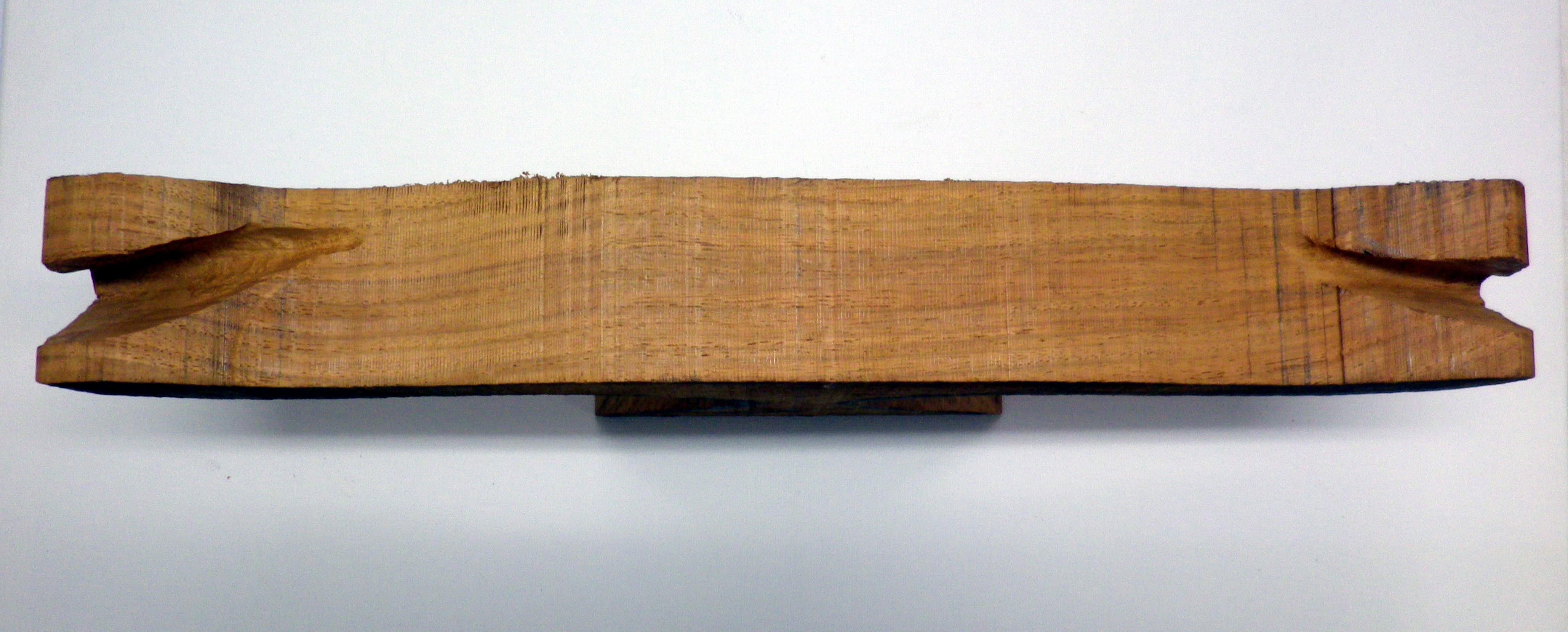 First a cut is made across the top using the bandsaw to match the curve in the ivory where it will sit on the base. The notches are needed so that the ivory will lock in place. First, I roughly cut the notches with a wood saw then used very coarse carbide burs in my jewellers flexible shaft drill hand piece.