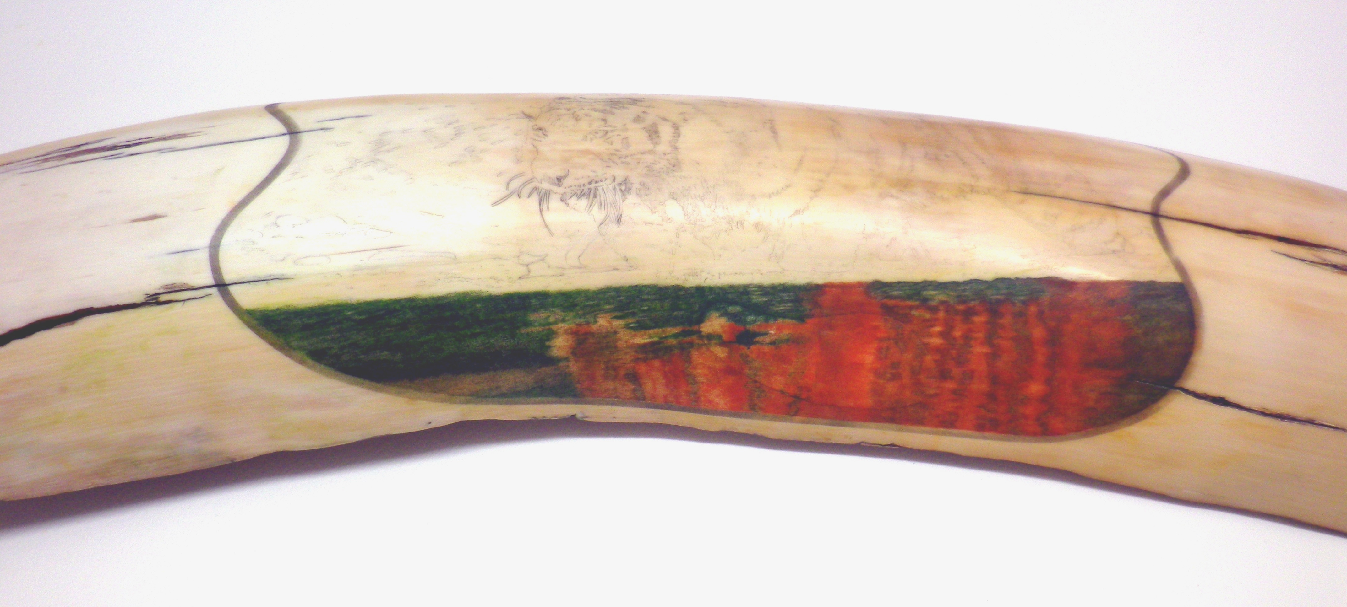 The curved boarder running around the picture was created with the sandblasting method. I anticipate this Scrimshaw taking many weeks to finish.